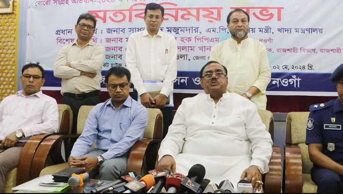 বৃহস্পতিবার (২ মে) দুপুরে নওগাঁয় সার্কিট হাউজে বোরো ধান-চাল সংগ্রহ অভিযান উপলক্ষে খাদ্য বিভাগের কর্মকর্তা-কর্মচারীদের সাথে মতবিনিময় সভা শেষে সাংবাদিকদের তিনি এসব কথা বলেন।