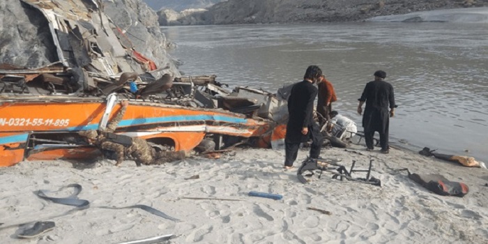 দিয়ামের জেলা উদ্ধার কর্মকর্তা শওকত রিয়াজের মতে, বেসরকারি সংস্থার ওই বাসটি রাওয়ালপিন্ডি থেকে গিলগিটের দিকে যাচ্ছিল। পথিমধ্যে কারাকোরাম হাইওয়ের কাছে গুনার ফার্মের কাছে চালক নিয়ন্ত্রণ হারিয়ে ফেলেন। পরে বাসটি উল্টে সিন্ধু নদীর তীরে পড়ে যায়।