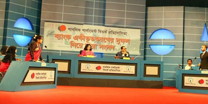 ‘ব্যাংক একীভূতকরণ অর্থনীতিতে সুফল বয়ে আনবে’ শীর্ষক ছায়া সংসদে বেগম বদরুন্নেসা সরকারি মহিলা কলেজের বিতার্কিকদের পরাজিত করে তেজগাঁও কলেজের বিতার্কিকরা বিজয়ী হয়। প্রতিযোগিতায় বিচারক ছিলেন অধ্যাপক আবু মুহাম্মদ রইস, ড. এস এম মোর্শেদ, আর্থিক খাত বিশেষজ্ঞ মাহাবুব এইচ মজুমদার, সাংবাদিক দৌলত আক্তার মালা, সাংবাদিক মো. আলমগীর হোসেন। প্রতিযোগিতা শেষে বিজয়ী দলকে ট্রফি, ক্রেস্ট ও সনদপত্র প্রদান করা হয়।