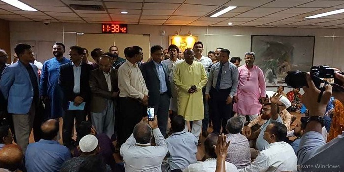 সোনালী ব্যাংকে কর্মীদের বিক্ষোভ, চেয়ারম্যান-এমডিকে স্মারকলিপি