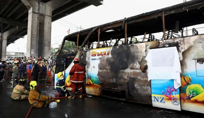 মঙ্গলবার (১ অক্টোবর) রাজধানী ব্যাংককের উপকণ্ঠে এ ঘটনা ঘটে। বাসটিতে ৪৪ শিক্ষক-শিক্ষার্থী ছিলেন। তারা উথাই থানি প্রদেশ থেকে আয়ুথায়া এবং ননথাবুরি প্রদেশে একটি ফিল্ড ট্রিপে যাচ্ছিলেন। পথে বাসটি আগুন লেগে পুড়ে যায়। দেশটির পরিবহনমন্ত্রী সুরিয়া জুয়াংরুংরুংকিত সাংবাদিকদের এ তথ্য জানান।