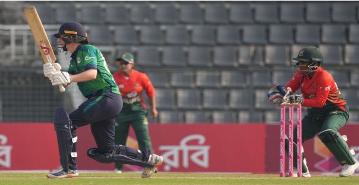 বৃহস্পতিবার (৫ ডিসেম্বর) টস জিতে আইরিশ মেয়েরা আগে ব্যাট করার সিদ্ধান্ত নেন। ওপেনিংয়ে অ্যামি হান্টারকে সঙ্গে নিয়ে মাঠে নামেন অধিনায়ক গ্যাবি লু্ইস। শুরুতেই দুই পেসার দিয়ে বোলিং এটাক সাজানো হয় বাংলাদেশের। জাহানারা আলম ও ফারিহা তৃষ্ণা শুরুটায় বোলিং করেন। নিজের প্রথম ওভারে কিপ্টে বোলিং উপহার দেন জাহানারা। পরের ওভারেই দলীয় ১৬ রানে অ্যামি হান্টারকে বোল্ড করে সাজঘরে ফেরান বাংলাদেশের এই নারী পেসার।