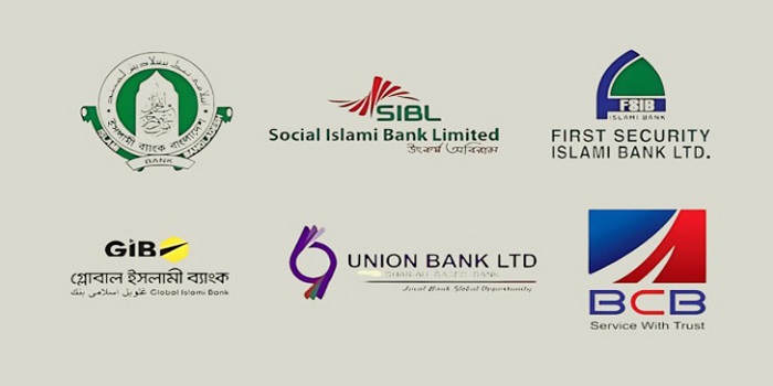 ব্যাংকগুলো—ইসলামী ব্যাংক বাংলাদেশ, সোশ্যাল ইসলামী ব্যাংক, ফার্স্ট সিকিউরিটি ইসলামী ব্যাংক, ইউনিয়ন, গ্লোবাল ইসলামী ও বাংলাদেশ কমার্স ব্যাংক।