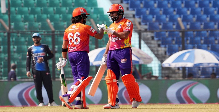 তিনে ব্যাট করতে নেমে দলের হাল ধরেন সাইফ হাসান। তাকে সঙ্গ দেওয়ার চেষ্টা করলেও ১৩ বলে ১৪ রান করে আউট হন খুশদিল শাহ। ফিফটি তুলতে পারেননি সাইফও। ২৯ বলে ৪৩ রান করে বাউন্ডারি লাইনে কাটা পড়েন তিনি।