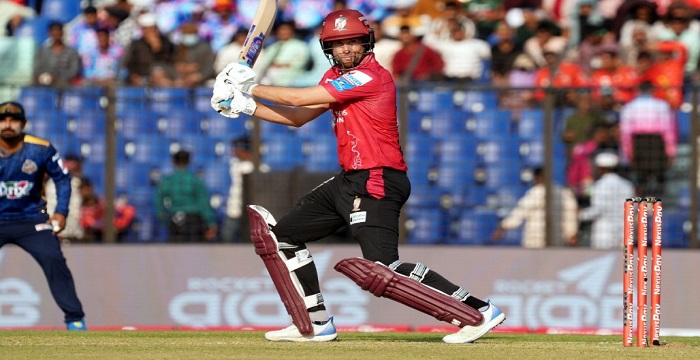 এর আগে টস হেরে ব্যাট করতে নেমে শুরুটা ভালো করতে পারেনি ঢাকা। ৮ বলে ১০ রান করে শুরুতেই সাজঘরে ফেরেন লিটন দাস। ৪ বলে শূন্য করে ফেরেন রিয়াজ হাসান। ১৪ বলে ৭ রান করে তাকে সঙ্গ দেন আরেক ওপেনার তানজিদ তামিম। এতে দলীয় ২০ রানে ৩ উইকেট হারায় ঢাকা।