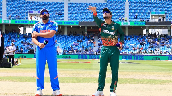 আইসিসি চ্যাম্পিয়নস ট্রফির নবম আসরের দ্বিতীয় ম্যাচে ভারতের মুখোমুখি হচ্ছে বাংলাদেশ। টস জিতে আগে ব্যাটিংয়ের সিদ্ধান্ত নিয়েছেন বাংলাদেশ অধিনায়ক নাজমুল হোসেন শান্ত। একাদশে নেই মাহমুদউল্লাহ ও নাহিদ রানা।