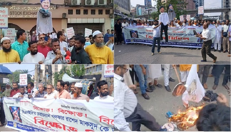 এ সময় বিনিয়োগকারীর খন্দকার রাশেদ মাকসুদ ও আবু আহমেদের অপসরণ দাবিতে বিভিন্ন শ্লোগান দেন। পরে বিক্ষোভ শেষে বিনিয়োগকারীরা বিএসইসি চেয়ারম্যান খন্দকার রাশেদ মাকসুদের কুশপুত্তলিকা দাহ করেন।