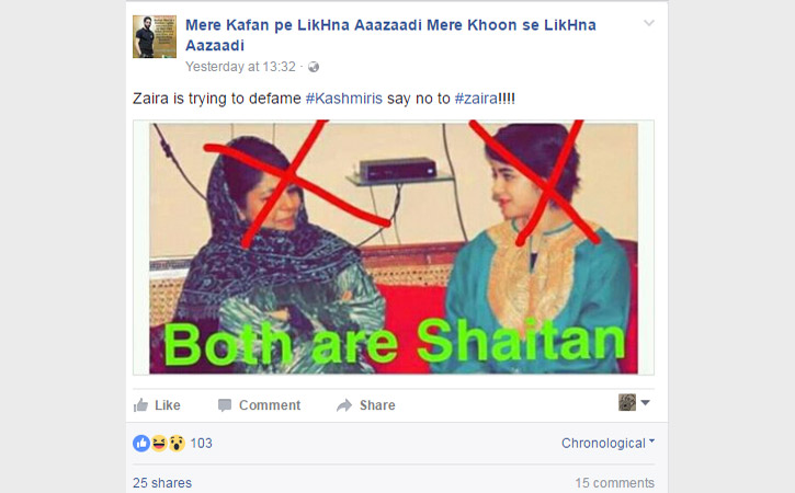২০১৬ সালে মুক্তিপ্রাপ্ত সাড়া জাগানো বলিউড সিনেমা দঙ্গল। সিনেমাটিতে আমিরের মেয়ে গীতা ফোগাটের কিশোরী বয়সের চরিত্রে অভিনয় করেছেন জাইরা ওয়াসিম। সম্প্রতি সামাজিক যোগাযোগমাধ্যমে একটি ছবি পোস্ট করে বিদ্রূপের শিকার হন এ অভিনেত্রী। পরবর্তীতে বিষয়টিতে ক্ষমাও চেয়েছেন তিনি।