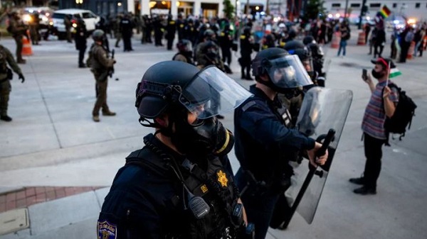 একজন বিক্ষোভকারীকে শারীরিকভাবে দমন করে মাটিতে ফেলে তার হাত পেছন দিকে বেঁধে রাখা হয় প্লাস্টিকের জিপ-টাই দিয়ে। বেশিরভাগ বিক্ষোভকারী এরই মধ্যে এলাকা ছাড়লেও পুলিশ ধীরে ধীরে পুরো এলাকা খালি করেছে বলে জানিয়েছেন সিএনএনের প্রতিবেদক নিক ওয়াট।