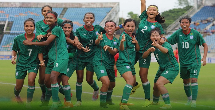 প্রথমে ফিফা র্যাঙ্কিংয়ের ৩৬ ধাপ এগিয়ে থাকা বাহরাইনকে বিধ্বস্ত, এবার বাংলার বাঘিনীরা হারাল ৭৩ ধাপ এগিয়ে থাকা মিয়ানমারকে। আর তাতে প্রথমবার এএফসি নারী এশিয়ান কাপের মূলপর্বে খেলার পথে এক পা দিয়ে রাখল বাংলাদেশ জাতীয় নারী ফুটবল দল।