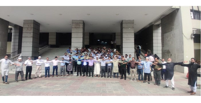 বুধবার (১৬ জুলাই) বাংলাদেশ ব্যাংকের ৩০তলা ভবনের সামনে এই কর্মসূচি পালন করেন কর্মকর্তারা।
