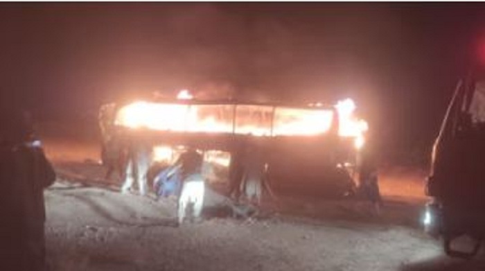 এ সময় বাসটিতে আগুন ধরে গেলে হতাহতের এ ঘটনা ঘটে। হেরাত প্রদেশের পুলিশ জানায়, ‘অতিরিক্ত গতি ও চালকের অসাবধানতার’ কারণে দুর্ঘটনাটি ঘটে।