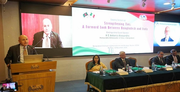 সোমবার (১০ নভেম্বর) বাংলাদেশ ইনস্টিটিউট অব ইন্টারন্যাশনাল অ্যান্ড স্ট্র্যাটেজিক স্টাডিজ (বিআইআইএসএস) ‘সম্পর্ক জোরদার: বাংলাদেশ-ইতালির ভবিষ্যৎ দৃষ্টিভঙ্গি’- শীর্ষক একটি কান্ট্রি লেকচার সিরিজে দেওয়া বক্তব্যে এ তথ্য জানান রাষ্ট্রদূত।