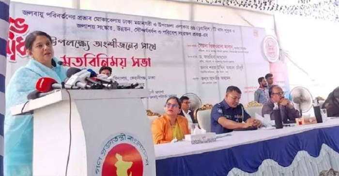তিনি বলেন, জলবায়ু পরিবর্তনের ঝুঁকি মোকাবিলায় প্রাকৃতিক জলাধার সংরক্ষণ জরুরি। ঢাকার অধিকাংশ জলাশয় দখল, ভরাট ও দূষণের চাপের মুখে রয়েছে। জেলা প্রশাসনকে বাকি জলাশয়গুলোর তালিকা তৈরি করে ধাপে ধাপে পুনর্গঠনের নির্দেশ দেন তিনি।