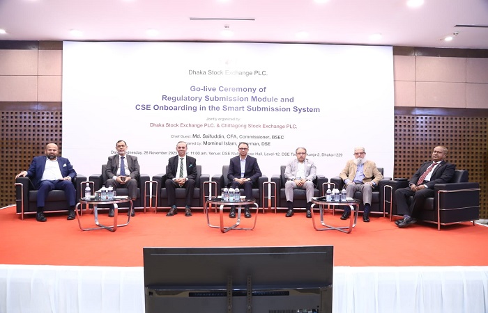 অনুষ্ঠানের প্রধান অতিথি বিএসইসি’র কমিশনার মোঃ সাইফুদ্দিন সিএফএ বলেন যে, আজ ঢাকা স্টক এক্সচেঞ্জ এর ডিজিটাল রূপান্তরের অংশ হিসেবে নতুন ডিজিটাল সাবমিশন প্ল্যাটফর্ম উদ্বোধন করা হয়েছে। প্ল্যাটফর্মটির উদ্দেশ্য হলো বাজার–সংশ্লিষ্ট আর্থিক তথ্যের সহজ, স্বচ্ছ ও মানসম্মত প্রাপ্যতা নিশ্চিত করা, যা নিয়ন্ত্রক, অডিটর ও অন্যান্য অংশীজনের তথ্য ব্যবহারের দক্ষতা বাড়াবে।