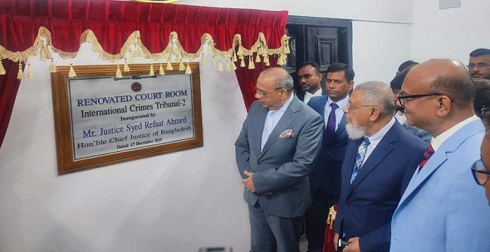 সংস্কার করা আন্তর্জাতিক অপরাধ ট্রাইব্যুনাল-২ এর এজলাস উদ্বোধন করেছেন প্রধান বিচারপতি ড. সৈয়দ রেফাত আহমেদ।