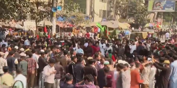 এসময় তাদের, ‘ফ্যাসিবাদের কালো হাত ভেঙে দাও, গুঁড়িয়ে দাও’, ‘আওয়ামী লীগের আস্তানা এই বাংলায় হবে না’, ‘হাদি ভাইয়ের রক্ত বৃথা যেতে দেবো না,’ ‘আমরা সবাই হাদি হবো, যুগে যুগে লড়ে যাবো’, ‘এই মুহুর্তে দরকার, বিপ্লবী সরকার’, ‘তুমি কে আমি কে, হাদি, হাদি’ ইত্যাদি স্লোগান দিতে দেখা যায়।