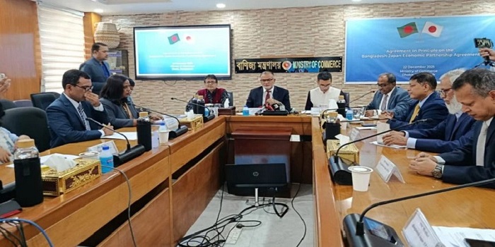 আজ সোমবার বাণিজ্য মন্ত্রণালয়ের সম্মেলন কক্ষে বাংলাদেশ-জাপান অর্থনৈতিক অংশীদারিত্ব চুক্তি নেগোসিয়েশন বিষয়ে এক সংবাদ সম্মেলনে এসব তথ্য জানানো হয়।