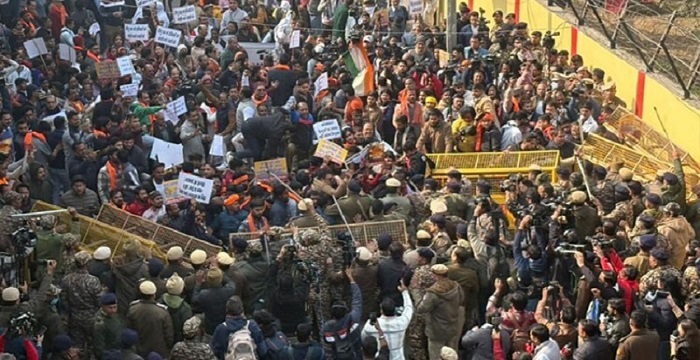 মঙ্গলবার (২৩ ডিসেম্বর) হিন্দুত্ববাদী সংগঠন বিশ্ব হিন্দু পরিষদ (ভিএইচপি) ও বজরং দলের শত শত কর্মী হাইকমিশনের সামনে জড়ো হয়ে বিক্ষোভে অংশ নেন।