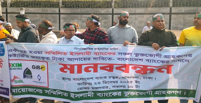 একীভূত পাঁচ ইসলামী ব্যাংকের ভুক্তভোগী আমানতকারীদের অবস্থান কর্মসূচি