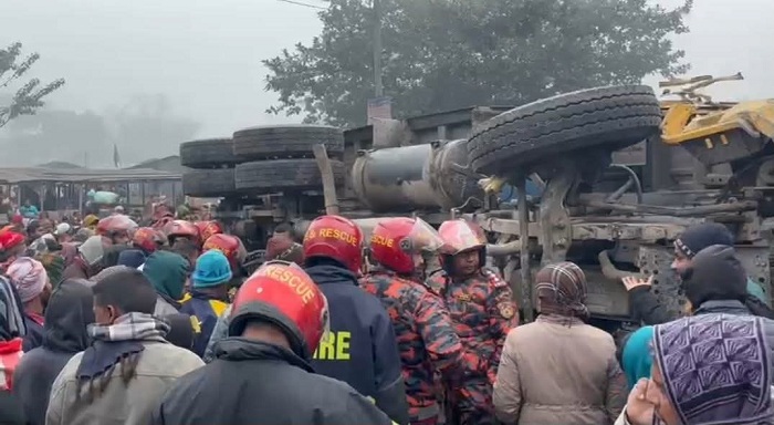 এ বিষয়ে তিনি বলেন, বৃহস্পতিবার সকালে ঝলমলিয়া বাজারের একটি ট্রাক নিয়ন্ত্রণ হারিয়ে কলা হাটের মধ্যে উল্টে যায়। এতে ট্রাকচাপা পড়ে ঘটনাস্থলেই ৪ জন নিহত হয়। নিহতদের মরদেহ হাইওয়ে পুলিশের কাছে হস্তান্তর করা হবে।