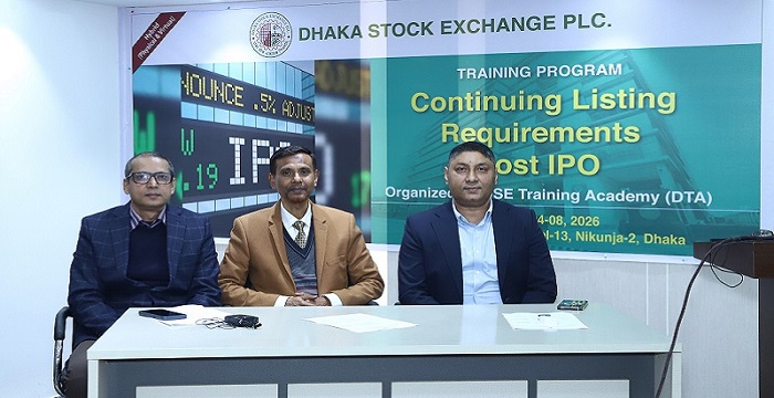 ডিএসইর ট্রেনিং একাডেমি কর্তৃক আয়োজিত ৩ (তিন) দিনব্যাপী কন্টিনিউয়িং লিস্টিং রিকোয়ারমেন্ট পোস্ট আইপিও শীর্ষক সেমিনারে এসব কথা বলেন, ডিএসইর পরিচালক মোঃ সাজেদুল ইসলাম। এসময় আরও উপস্থিত ছিলেন বিএসইসি’র পরিচালক মোঃ আবুল কালাম ও ডিএসই ট্রেনিং একাডেমির উপ-মহাব্যবস্থাপক সৈয়দ আল আমিন রহমান।