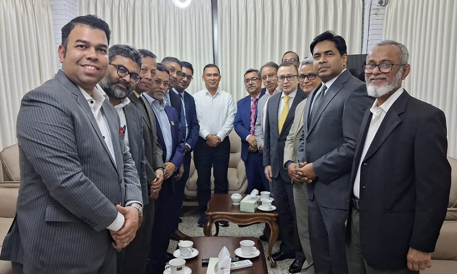 বিএনপির চেয়ারম্যান তারেক রহমানের সঙ্গে বৈঠক করেছেন ঢাকা ও চট্টগ্রাম স্টক এক্সচেঞ্জ-ডিএসই ব্রোকার্স অ্যাসোসিয়েশন অব বাংলাদেশ ও মার্চেন্ট ব্যাংক অ্যাসোসিয়শনের কর্মকর্তারা। মঙ্গলবার (২০ জানুয়ারি) তারেক রহমানের গুলশান অফিসে এই বৈঠক অনুষ্ঠিত হয়।
