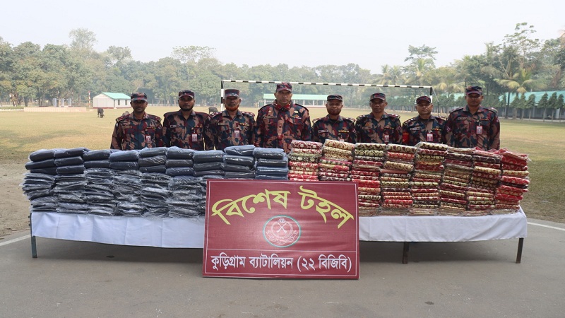 বিজিবি সূত্র জানায়, সীমান্ত এলাকায় মাদকদ্রব্য ও চোরাচালানি পণ্য পাচার রোধে কুড়িগ্রাম ব্যাটালিয়ন (২২ বিজিবি) সর্বোচ্চ গুরুত্ব দিয়ে ‘জিরো টলারেন্স’ নীতি বাস্তবায়ন করে আসছে। এরই ধারাবাহিকতায় সীমান্ত নিরাপত্তা জোরদার, চোরাচালান দমন এবং সব ধরনের অবৈধ অনুপ্রবেশ প্রতিরোধে বিজিবির সদস্যরা সর্বক্ষণ সতর্ক থেকে পেশাদারিত্ব ও দক্ষতার সঙ্গে নিরবচ্ছিন্নভাবে দায়িত্ব পালন করে যাচ্ছেন।