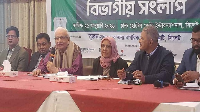 রোববার (২৫ জানুয়ারি) সকালে সিলেট নগরীর একটি হোটেলে ‘সচেতন, সংগঠিত ও সোচ্চার জনগোষ্ঠীই গণতন্ত্রের রক্ষাকবচ’ শিরোনামে গণঅভ্যুত্থানের আকাঙ্ক্ষা, সংস্কার ও নির্বাচনী ইশতেহার বিষয়ে সুজন আয়োজিত বিভাগীয় সংলাপে প্রধান অতিথির বক্তব্যে তিনি এ মন্তব্য করেন।