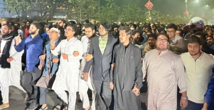 সমাবেশে ডাকসুর এজিএস মহিউদ্দিন খান বলেন, আমরা জুলাই অভ্যুত্থানের পরে একটি নতুন বাংলাদেশের স্বপ্ন দেখেছিলাম। কিন্তু দুঃখজনকভাবে হলেও সত্য বিএনপি ও তাদের অঙ্গ সংগঠনগুলো চাঁদাবাজি, সন্ত্রাস এবং খুনের মাধ্যমে সেই স্বপ্ন আমাদের কাছ থেকে ছিনিয়ে নিয়েছে।