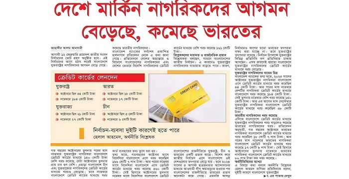 এ বিষয়ে কথা বললে অর্থনীতি বিশ্লেষক হেলাল আহমদ বলেন, দুইটি কারণে বাংলাদেশে যুক্তরাষ্ট্রের নাগরিকদের ক্রেডিট কার্ডের মাধ্যমে খরচ বাড়তে পারে। প্রথমত, বিজনেস পারপাসে যুক্তরাষ্ট্রের নাগরিকদের বাংলাদেশে যাতায়াত বাড়তে পারে। ব্যবসা-বাণিজ্য নিয়ে কথা বলতে যুক্তরাষ্ট্রের প্রতিনিধিরা বাংলাদেশে আসছেন। দ্বিতীয়ত, সামনে জাতীয় সংসদ নির্বাচন। এ উপলক্ষেও যুক্তরাষ্ট্রের বিভিন্ন প্রতিনিধি দল বাংলাদেশে আসছে। এসব কারণেই মূলত খরচ বেড়েছে।