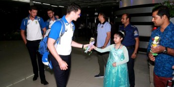 স্টিভেন স্মিথের হাতে ছোট্ট একটা ফুলের তোড়া তুলে দিল একটি শিশু। চাইলে অস্ট্রেলিয়ার এই পুরো বাংলাদেশ সফরের প্রতীক বলেই ধরে নিতে পারেন এই দৃশ্যটাকে। কারণ, অস্ট্রেলিয়া দলকে এমনই ভালোবাসা আর ফুলের আদরে বরণ করে নিতে প্রস্তুত বাংলাদেশ। কঠোর নিরাপত্তার কারণে অস্ট্রেলিয়া দলের ধারেকাছে কেউ পৌঁছাতে না পারলেও এমন ফুলেল অভিবাদনেই বাংলাদেশে পা রাখলো অস্ট্রেলিয়া দল। দীর্ঘ অপেক্ষার পর, প্রায় ১১ বছরের অপেক্ষার পর আবার টেস্ট সিরিজ খেলতে ঢাকা নগরীতে পৌঁছাল স্টিভেন স্মিথের নেতৃত্বাধীন বাংলাদেশ দল।অস্ট্রেলিয়ার এই টেস্ট দলের নেতৃত্বে আছেন তরুণ অলরাউন্ডার স্টিভেন স্মিথ। আর দলটির কোচ হিসেবে আছেন দেশটির এক সময়ের বড় তারকা ব্যাটসম্যান ড্যারেন লেহম্যান।