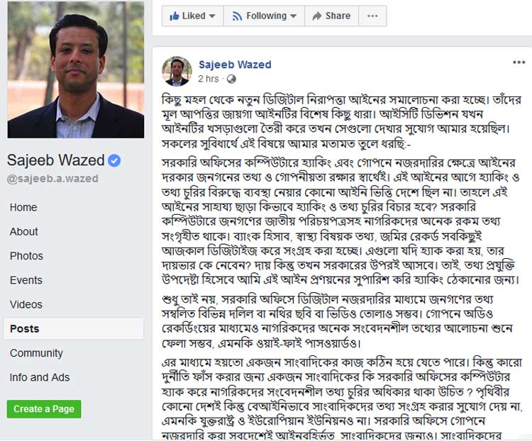 সজীব ওয়াজেদ জয়ের পুরো স্ট্যাটাসটা হুবহু তুলে ধরা হলো-