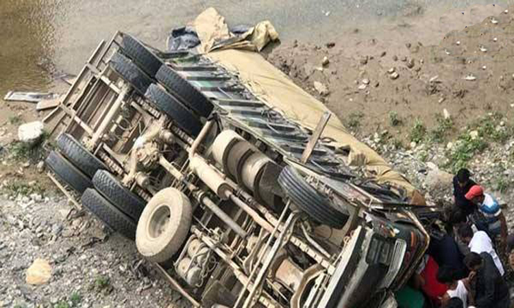 রাস্তা থেকে প্রায় ৪শ মিটার নিচে একটি নদীর তীরে ট্রাকটি পড়ে গেলে ২০জনের মৃত্যু ঘটে। ছবি: সংগৃহীত।