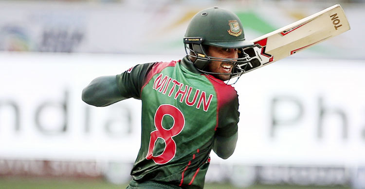চরম বিপর্যয়ের মুখে আস্থার প্রতিদান দিতে পারেননি নিষেধাজ্ঞা কাটিয়ে আন্তর্জাতিক ক্রিকেটে ফেরার সাব্বির রহমান। মিচেল স্যান্টনারের বলে ভারসাম্য হারিয়ে স্ট্যাম্পিং হয়ে ফেরেন তিনি। এ হার্ডহিটার ফিরলে মেহেদী হাসান মিরাজকে নিয়ে দলের হাল ধরেন মিথুন। ভালো সঙ্গও পান তিনি। ফলে তাদের মধ্যে জুটি গড়ে ওঠে।