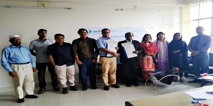 জাহাঙ্গীরনগর বিশ্ববিদ্যালয়ের ল’ ফ্যাকাল্টির ডিন প্রফেসর বশির আহমেদ, ল’ অ্যান্ড জাস্টিস ডিপার্টমেন্টের চেয়ারম্যান কে এম সাজ্জাদ মহাসীন এবং জেনিথ ইসলামী লাইফ ইন্স্যুরেন্সের মুখ্য নির্বাহী কর্মকর্তা (সিসি) এস এম নুরুজ্জামান চুক্তিতে স্বাক্ষর করেন।