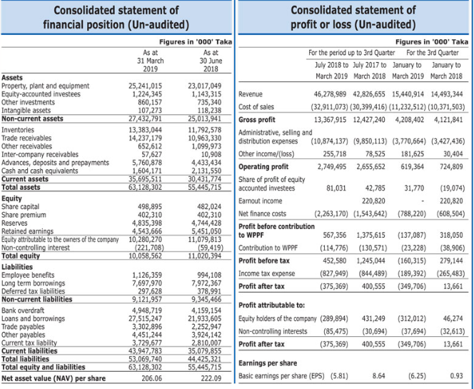 জানা গেছে, ৯ মাসে (জুলাই’১৮-মার্চ’১৯) কোম্পানির কোম্পানির শেয়ার প্রতি লোকসান (ইপিএস) হয়েছে ৫ টাকা ৮১ পয়সা। গত অর্থবছরের একই সময়ে ইপিএস ছিলো ৮ টাকা ৬৪ পয়সা।