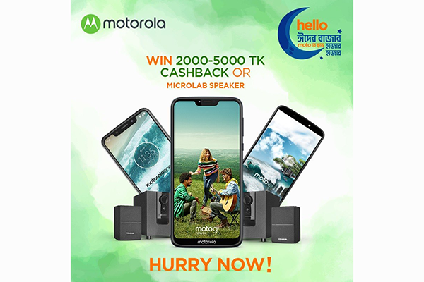 ঢাকা, মে ১৯, ২০১৯: আসন্ন রমজান মাস উপলক্ষ্যে মাসব্যাপী ‘মটো ঈদের বাজার, মটোতে ছাড় হাজার হাজার’ শীর্ষক ক্যাম্পেইন শুরু করেছে মোবাইল ফোন নির্মাতা প্রতিষ্ঠান মটোরোলা। ক্যাম্পেইনের আওতায় মটোরোলার ফোন কিনলেই গ্রাহকরা পাবেন ৫,০০০ টাকা পর্যন্ত ক্যাশব্যাক সুবিধা।