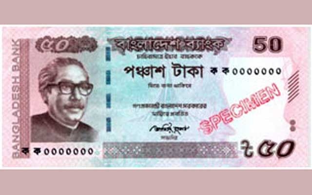 মঙ্গলবার এক সংবাদ বিজ্ঞপ্তিতে কেন্দ্রীয় ব্যাংক এ তথ্য জানিয়ে বলেছে, ১০ ও ৫০ টাকা মূল্যমানের ব্যাংক নোট দুটির রঙের মধ্যে ক্ষীণ সংশ্লেষ থাকায় জনসাধারণের সুবিধার্থে লালচে কমলা রংয়ে বঙ্গবন্ধুর ছবি ও গর্ভনর ফজলে কবিরের স্বাক্ষর সম্বলিত ৫০ টাকা মূল্যমান ব্যাংক নোট মুদ্রণ করা হয়েছে।