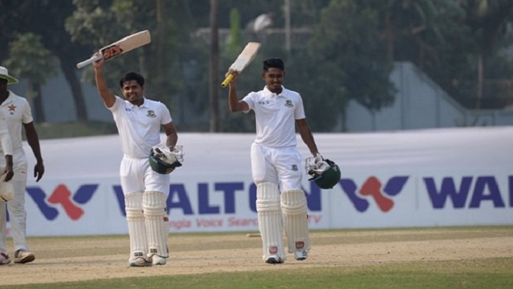 প্রথমে তানজিদের ব্যাট থেকে আসে শতক এরপর তাঁর দেখানো পথ ধরে শতক তুলে নেন আল-আমিনও। ১৪৫ বলে ১৬ চারে শতক তুলে নেন অধিনায়ক আল আমিন। শেষ পর্যন্ত ৯৯ বলে ১২৫ রান করে অপরাজিত থাকেন তানজিদ হাসান তামিম। এই দুই ক্রিকেটার ষষ্ঠ উইকেট ২২১৯ রানের জুটি গড়েন। আর জিম্বাবুয়ের থেকে মাত্র ৩ রানে পিছিয়ে থেকে ড্র মেনে নেয় দু'দল। শেষ পর্যন্ত ৫ উইকেট হারিয়ে বাংলাদেশ দল সংগ্রহ করে ২৮৮ রান।