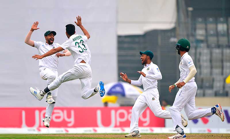 তাতে জয়টা সময়ের ব্যাপার হয়ে দাঁড়ায় স্বাগতিকদের। নবম ব্যাটসম্যান হিসেবে টিমিসেন মারুমাকে ফিরিয়ে দেন নাঈম। ফেরার আগে ৫ চারে সংগ্রামী ৪১ রান করেন তিনি। আর তাকে শিকার বানিয়ে ক্যারিয়ারে দ্বিতীয়বারের মতো ৫ উইকেট সংগ্রহ করেন টাইগার তরুণ অফস্পিনার।
