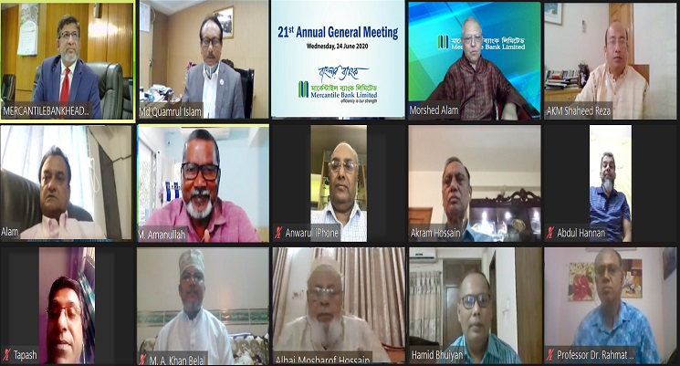 ভার্চুয়াল অনুষ্ঠানে যুক্ত ছিলেন ব্যাংকের ভাইস চেয়ারম্যান আকরাম হোসেন (হুমায়ুন), নির্বাহী কমিটির চেয়ারম্যান মোঃ আনোয়ারুল হক, অডিট কমিটির চেয়ারম্যান ডঃ মোঃ রহমত উল্লাহ, মার্কেন্টাইল ব্যাংক ফাউন্ডেশনের চেয়ারম্যান এ. কে. এম. সাহিদ রেজা, পরিচালক- এ.এস.এম. ফিরোজ আলম, মোঃ আব্দুল হান্নান, এম. আমানউল্লাহ, মোশাররফ হোসেন, এম. এ খান বেলাল ও ডঃ মোঃ হামিদ উল্লাহ্ ভূঁঞা। এছাড়াও ব্যাংকের কোম্পানী সচিব আবু আসগার জি. হারুনী, সিএফও তাপস চন্দ্র পাল, পিএইচডিসহ শেয়ারহোল্ডারগণ ভার্চুয়াল এজিএম-এ অংশ নেন।