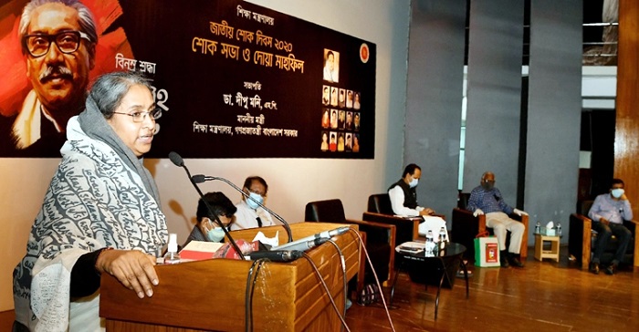 বৃহস্পতিবার (২০ আগস্ট) সন্ধ্যায় আন্তর্জাতিক মাতৃভাষা ইনস্টিটিউটে শিক্ষা মন্ত্রণালয়ের আয়োজনে জাতীয় শোক দিবস উপলক্ষে আলোচনা সভা শেষে সাংবাদিকদের প্রশ্নের জবাবে একথা জানান শিক্ষামন্ত্রী।