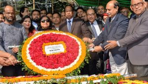 বঙ্গবন্ধুর প্রতিকৃতিতে কর্মসংস্থান ব্যাংকের পরিচালকের শ্রদ্ধা নিবেদন