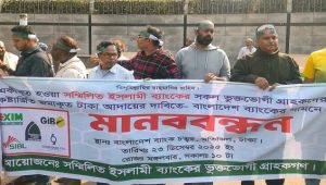 একীভূত পাঁচ ইসলামী ব্যাংকের ভুক্তভোগী আমানতকারীদের অবস্থান কর্মসূচি