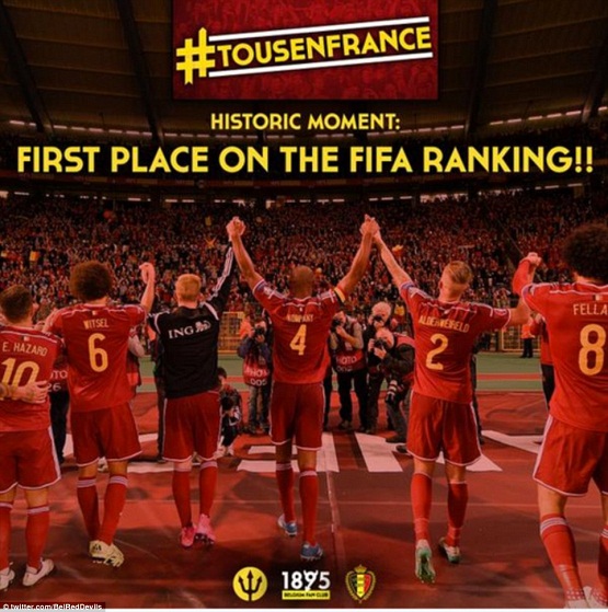 ফিফা র‌্যাঙ্কিংয়ে শীর্ষে বেলজিয়াম