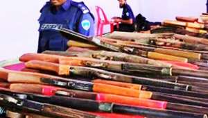 স্বরাষ্ট্রমন্ত্রীর হাতে অস্ত্র তুলে দিয়ে ৩৪ জলদস্যুর আত্মসমর্পণ