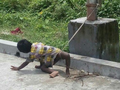 সন্তানকে বেঁধে রেখে কাজে যান মা!