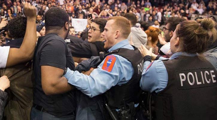 ট্রাম্প সমর্থক-বিক্ষোভকারীদের সংঘর্ষ, র‌্যালি বাতিল