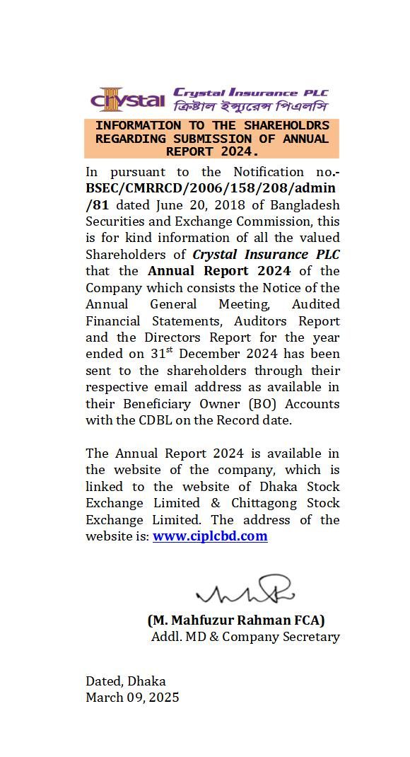 Crystal Insurance Company Limited Information to shareholders